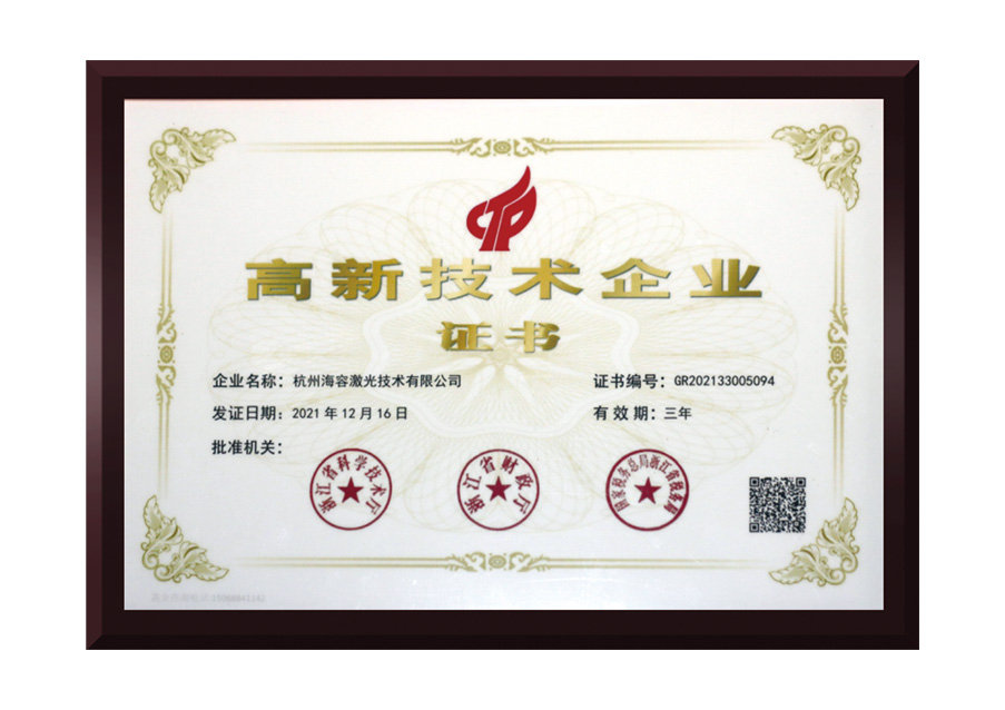 高新技术企业证书